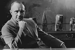 Delmas Nucker was born in Terre Haute, Indiana. He attended Brown's Business College in Galesburg, Illinois.[1] He married Catherine ("Katy") Moore and together they had one son, William James, in 1927. He worked at the Independent Oil Company from 1927 until 1942.[2] Throughout the Great Depression they lived in Pennsylvania in various locations, chiefly Altoona. Mr. Nucker served with the Office of Price Administration, organizing rationing boards in the central third of Pennsylvania during World War II. At the close of the war, from 1943 to 1947 Mr. Nucker became an administrator for the newly-formed United Nations Relief and Rehabilitation Administration (UNRRA). [3] He recruited personnel for foreign offices of the mission, travelling to England, France, Belgium, Holland, and ultimately China.