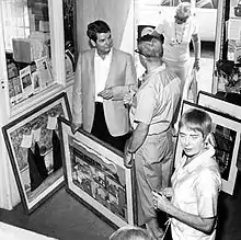 Del (left) with his painting "Sunset Express" at an art show in the city of Avalon where he won "Best of Show" in 1967