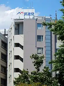 The Democratic Party (民進党, Minshintō), abbreviated as DP, was a political party in Japan. It was the largest opposition political party in Japan from 2016 until its marginalization in the House of Representatives in 2017.[8] The party was founded on 27 March 2016 from the merger of the Democratic Party of Japan and the Japan Innovation Party.[9] The majority of the party split on 28 September 2017, before the 2017 general election, with many its members contesting the election as candidates for the Party of Hope, Constitutional Democratic Party of Japan or as party members without nomination.[10][11][12] On 7 May 2018 the DP merged with the Party of Hope to form the Democratic Party for the People.[13][14]