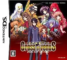 Dengeki Gakuen RPG: Cross of Venus (電撃学園RPG Cross of Venus) is a Japanese action role-playing video game developed by Pegasus Japan and published by ASCII Media Works for the Nintendo DS handheld video game console,[1] and was first released in Japan on March 19, 2009, in limited and regular editions.[2] An enhanced remake was released on the Nintendo DS in February 2011, titled Dengeki Gakuen RPG: Cross of Venus Special.[3] The game was produced in commemoration of the fifteenth anniversary of ASCII Media Works' light novel imprint Dengeki Bunko.[4] The player assumes the role of an unnamed protagonist attending Dengeki Academy who stumbles into a fight between heroines from Dengeki Bunko novel worlds and the evil organization Zetsumu. The reality-based world of Dengeki Academy and the novel worlds have become connected and the player is able to help the Dengeki Bunko heroines fight the Zetsumu by going between the worlds. Eight heroines are presented including Shana from Shakugan no Shana, Kino from Kino's Journey, and Kana Iriya from Iriya no Sora, UFO no Natsu. Each heroine fights with her own unique style of weapon, combos, and special attacks. The protagonist is designed by Kouhaku Kuroboshi, and his childhood friend Kizuna Kasugai is designed by Noizi Ito.[4]