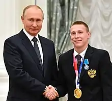 On September 11, 2021, Ablyazin, together with his gold medal-winning Olympic teammates, was awarded with the Order of Friendship medals by President Vladimir Putin.[10]