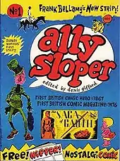 However, Gifford's concerns were limited to comics intended for children and adolescents, and he was well aware of a development of the medium for an adult audience. He collected and was able to appreciate the content of underground and Modern Age comics, offering sophisticated and sometimes sympathetic analysis.[60] Gifford's own Ally Sloper comic (1976) offered a combination of vintage and alternative strips for an adult audience, although the nostalgic strips were his primary interest.[61]