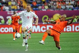Rommedahl playing against the Netherlands at the Euro 2012 tournament.
