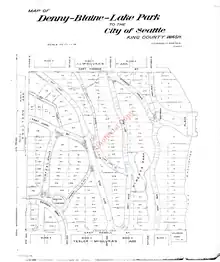 - 1 2 3 "Denny-Blaine-Lake Park Addition to the City of Seattle". King County, WA (.gov) Records. April 15, 1901. PLAT Book 9, Page 85.