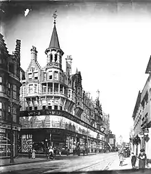 The UK's first purpose-built department store building was Compton House in Liverpool, completed in 1867 for the retailer J.R. Jeffrey, to replace a previous building which had burned down in 1865.[38] It was probably the largest in the world at the time.[39] It is occupied today by Marks & Spencer.