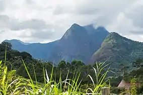 The Desengano State Park has an area of 21,444 hectares (52,990 acres) divided between the municipalities of Santa Maria Madalena, São Fidélis and Campos dos Goytacazes in the north of the state of Rio de Janeiro.[1] Elevations range from 200 to 1,761 metres (656 to 5,778 ft).[2] The rugged terrain includes ridges, pointed peaks, sugar loaf mountains and scarps with slopes of up to 75 degrees. Peaks include the Pico do Desengano 1,761 metres (5,778 ft), Pico São Mateus 1,576 metres (5,171 ft) and Pedra Agulha 1,080 metres (3,540 ft).[3]