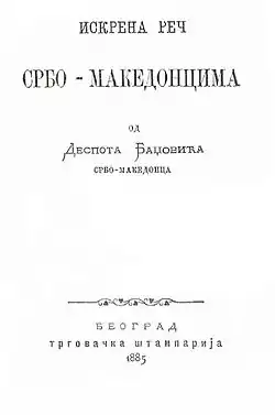 At the end of 1879, with approval of Matija Ban, Badžović published the 'Alphabet Textook for Serbo-Macedonian Primary Schools' (Serbian: Буквар за србо-македонске основне школе) written on "Serbo-Macedonian dialect".[4] Matija Ban proposed to the government of the Principality of Serbia to establish the Main Board with eight members who would maintain the connection with smaller sub boards in smaller places in the Old Serbia and Macedonia.[14] Minister of Education Vladan Đorđević engaged Badžović to participate in composing of the alphabet book for the Serbian Schools in Macedonia. He adapted his earlier alphabet book and sent it to the Ministry of Education of Serbia under a new name 'Alphabet book for Macedonian Schools in Turkish Empire' (Serbian: Буквар за македонски училишта у Турској Царевини).[15]
