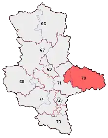 Dessau – Wittenberg was created in 2009 and contained parts of the abolished constituencies of Elbe-Havel-Gebiet and Anhalt. In the 2009 election, it was constituency 71 in the numbering system. Since the 2013 election, it has been number 70. Its borders have not changed since its creation.