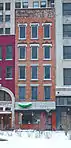 The Traub Brothers Jewelry Building is a four-story wood-frame brick building, built in 1879. Presumably the first floor was used as retail while the upper floors were used as residential space.[27] The building was purchased by Grand Trunk Railroad early in the 20th century, and in 1911 it was renovated to serve as their ticketing office.[1] Grand Trunk removed the second floor and installed a vaulted ceiling reminiscent of period railroad stations.[27] The renovation added a rounded arch on the second floor, filled with paned windows and surrounded by terra cotta detailing with the company's logo.[27] The finely detailed interior woodwork also includes company logos.[27] Although the lower floors of the building were completely altered during this renovation, the upper two floors still retain the original window shapes.[1]