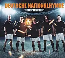 "Deutsche Nationalhymne" is a single by the German heavy metal band Bonfire that had not appeared on a previously released album. It was released in 2010 by the imprint LZ Records and the first release by the band under their new contract with Universal Music. The single was only available in Germany and was recorded in support for the 2010 World Cup event in South Africa for the German football team. It was a recording of the German National Anthem in a hard rock arrangement. The song managed to enter the Top 50 Songs listing in Germany[1] and it was the first time that a National Anthem had ever entered the Top 50 of any music chart.