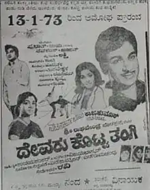 Devaru Kotta Thangi is a 1973 Indian Kannada-language film, directed by K. S. L. Swamy (Ravi) and produced by Sri Raghavendra Productions. The film stars Rajkumar, Jayanthi, Srinath and B. V. Radha. The film has musical score by Vijaya Bhaskar.[1][2] The movie saw a theatrical run of 17 weeks.[3]