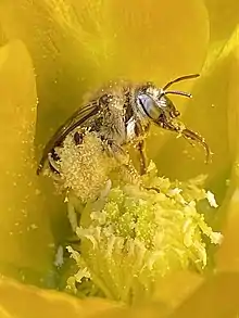Their host plants include asters, bindweeds, cacti, mallows, and willowherbs, although mallows are the most common and likely ancestral host plant for the whole genus. Its tribe is Emphorini.[1] In the Sonoran Desert, Diadasia rinconis is considered the "cactus bee" as it feeds almost exclusively on a number of Sonoran Desert cactus species, its life cycle revolving around the flowering of the native species of cacti.[2] Members of this genus suffer attacks from a variety of parasitoids, including these families: Bombyliidae, Mutillidae, Ripiphoridae, Meloidae. [3]