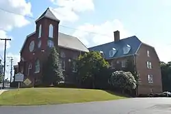 Diamond Hill Baptist Church is a historic African-American Baptist church located at Lynchburg, Virginia. It was built in 1886, and is a three-story, L-shaped, brick church building in the Late Gothic Revival style. It has brick buttresses capped with limestone, Gothic pointed arched windows, a three-story entrance tower with steeple, and a jerkinhead roof. From 1958 to 1963 the pastor was Virgil Wood, the pastor most associated with the Civil Rights Movement in Lynchburg.[3]