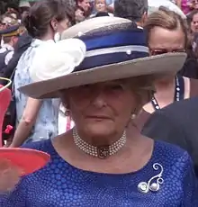 Lady Farnham was named a Lady of the Bedchamber to Queen Elizabeth II on 4 August 1987 upon the retirement of Patricia Nevill, Marchioness of Abergavenny.[3] Owing to her connections to Ireland, Lady Farnham accompanied The Queen on her landmark state visit to the Republic of Ireland in 2011. In 2012, during the Diamond Jubilee, she notably rode alongside The Queen to St Paul's Cathedral for the Service of Thanksgiving after Prince Philip, Duke of Edinburgh, was hospitalized.[4][2]