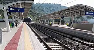 Diano railway station (Italian: Stazione di Diano) is a railway station serving the town of Diano Castello, in Liguria, northwestern Italy. The station is located on the Genoa–Ventimiglia railway and was opened on 11 December 2016. The train services are operated by Trenitalia.