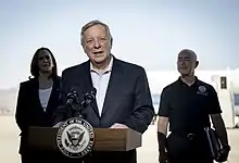 Raju, Manu; Schor, Elana; Wurman, Ilan (June 19, 2007). "Few senators read Iraq NIE report". The Hill. - ↑ Dorning, Mike; Chase, John (September 30, 2002). "Durbin opposes Bush war resolution" (paid archive). Chicago Tribune. p. 1 (Metro).