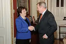- 1 2 3 Skiba, Katherine; Geiger, Kim (October 4, 2014). "When Interests Overlap for Durbin, Lobbyist Wife". Chicago Tribune. Retrieved July 29, 2016.
