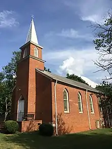 Dickerson Chapel was built in 1790 as the third courthouse for Orange County, North Carolina. It served as the county's courthouse until 1844, when the court relocated to what is known as the Old Courthouse.[1] The building was located on the corner of Churton and King Streets in Hillsborough. In 1845, the courthouse was purchased by Rev. Elias Dodson, the first Baptist minister in Hillsborough. Dodson had the building relocated to its present site on the corner of Churton and Queen Streets and reopened it as the First Baptist Church of Hillsborough.[2] It served as a Baptist church until 1862, when the property was purchased by three Quakers from Pennsylvania, who converted the building into a school for African-American children. In 1886 the chapel was given to trustees of the African Methodist Episcopal Church.[3][4]