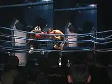 Four years later, "Die Another Day" was added to the set list of the 2008-09 Sticky & Sweet Tour, where it was used as a video interlude. It featured Madonna as a boxer on screen, while two of her dancers performed a faux boxing match. The video also showed Madonna in a technical knockout match, spraying her blood across the screen.[86] Madonna's DJ Enferno remixed the song and the performance ended with the singer falling down on the ground in the video, as she emerged from beneath the stage while jump-roping.[87] Paul Schrodt from Slant Magazine felt that the video emphasized the singer's "already-muscular arms", adding that "[u]nlike your run-of-the-mill diva, Madonna is willing to get dirty for her art, and she sometimes gets lost in her backup dancers' routine, though she's quick to remind the audience, 'I'm still the one in control'".[88] Ben Kaplan from Canada.com noted that "Die Another Day", along with the performances of "4 Minutes" and "La Isla Bonita" are re-imagined as "parts of larger medleys, with Madonna giving shout-outs to techno, flamenco and old-school R&B influences".[89] This performance was included on the Sticky & Sweet Tour live CD and DVD release, recorded during Madonna's shows in Buenos Aires, Argentina, in December 2008.[90]