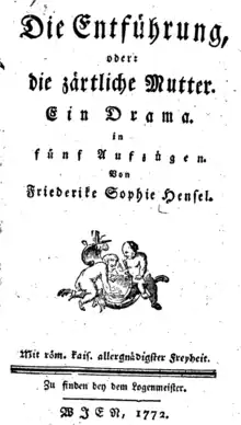 - ↑ Anne Fleig: "Friederike Sophie Hensel: Die Entführung, oder: die zärtliche Mutter (1772)". In Handlungs-Spiel-Räume: Dramen von Autorinnen im Theater des ausgehenden 18. Jahrhunderts (pp. 145–167), Königshausen & Neumann, 1999
