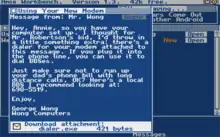 Mr. Wong: Hey, <name>, so you have your computer set up. [...]there's a dialer for your modem attached to this message. If you plug it into the phone line, you can use it to dial BBSes.