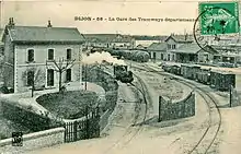 The new station was located adjacent to the existing station of the Departmental Railways of the Côte-d'Or, a secondary (not part of France's national railway network) narrow gauge railway servicing the following lines: Meuilley — Dijon, Dijon — Champlitte, and Dijon — Chatillon-sur-Seine. The last of these secondary lines would eventually close in 1948.[5][6]