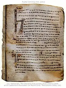 2. 1 2 "3/N Tarnanidis, Ioannes. The Psalter of Dimitri the Oltarnik. в: The Slavonic Manuscripts Discovered in 1975 at St. Catherine's Monastery on Mount Sinai. Thessaloniki, 1988, стр. 91 — 100" (PDF). narod.ru. Archived (PDF) from the original on 2014-02-19. Retrieved 2017-09-22.