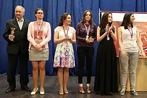 Belenkaya (third from right) at the 2016 Russian Team Championship