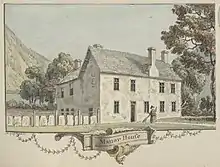 From around 1500, the Lordship of Mawddwy was held by members of the Mytton family.[9] In 1734, John Mytton, then the Lord of Mawddwy, donated a black marble font to the church at Mallwyd. The family held the lordship until 1831, when it was sold by "Mad Jack" Mytton to John Bird. In 1856. Bird in turn sold the title and the substantial estate in and around Dinas Mawddwy to Sir Edmund Buckley, a rich industrialist from Ardwick near Manchester.[10] Buckley passed the title and estate to his son Sir Edmund Buckley, 1st Baronet in 1864. In turn they passed to Sir Edmund Buckley, 2nd Baronet in 1910. Sir Edmund's son died fighting at Gallipoli in 1915, he died in 1919.