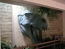 The Tyrannosaurus rex head in the extended queue area.