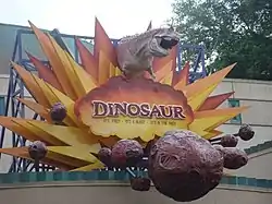 Dinosaur (stylized as DINOSAUR) is a dark ride EMV attraction at Disney's Animal Kingdom in Walt Disney World, Lake Buena Vista, Florida.[2][3] The ride features a turbulent journey through the late Cretaceous period, featuring prehistoric scenes populated with dinosaur audio-animatronics.[4] Originally named Countdown to Extinction when the park opened on April 22, 1998, the ride's name was changed to Dinosaur in 2000 to promote the Disney animated feature film of the same name. However, the two dinosaurs most prominently featured in the ride have always been an Iguanodon and Carnotaurus, which were both featured prominently in the film. Scenes from the movie also appear in the pre-show, to help the guests identify the Iguanodon as the film's protagonist, Aladar.