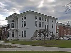 The Dinsmoor–Hale House is a historic house at the southwest corner of Main and Winchester Streets in Keene, New Hampshire. It was built in 1860 for Samuel Dinsmoor, Jr., a lawyer and former Governor of New Hampshire, and was later owned by Governor Samuel W. Hale, who made lavish alterations to its interior. It was acquired by what is now Keene State College in 1909.[2] It now houses the office of the college president.[3] The house was listed on the National Register of Historic Places in 1976.[1]