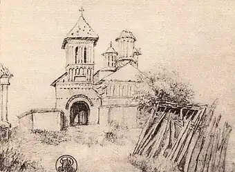 The old Church of Saint Demetrius in Craiova, as drawn in 1847 by Barbu Iscovescu