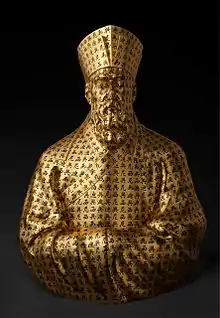 The Matteo Ricci[18] sculpture[19] was made in China,[20] for the ITALY Pavilion at Shanghai World Expo 2010,[21] on the 400th anniversary of his death.[22] At the end of the show, it was also displayed for about two years at the Italian Embassy in Beijing. The sculpture is now property of the Government of the Marche Region and it stands today at the entrance of the Confucius Institute of Macerata , while the plaster model is permanently placed at the main entrance of the Consulate General[23] of Italy in Shanghai, China.[24][25][26][27] In 2013 Finishing Performance of the original model in plaster of Matteo Ricci sculpture at the Italian Centre, former Italy Pavilion of Shanghai World EXPO 2010, Shanghai (China)[28][29]