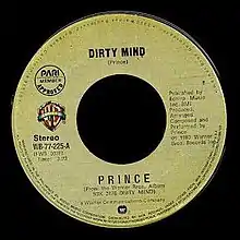 "Dirty Mind" is the follow-up single in the US, and title track to Prince's third album, released in 1980.[2] The song is built around a keyboard riff created by Doctor Fink, which dominates the song. The demo-like song lacks a chorus, and is a stark departure of the smooth R&B sound of Prince's first two albums. The lyrics concern sexual thoughts, which are fairly representative of the other songs from the album. The single's B-side is the ballad "When We're Dancing Close and Slow", from the previous year's Prince. "Dirty Mind" reached number sixty-five on the soul chart.[3] Along with the tracks "Uptown" and "Head", "Dirty Mind" reached number five on the dance chart.[4]