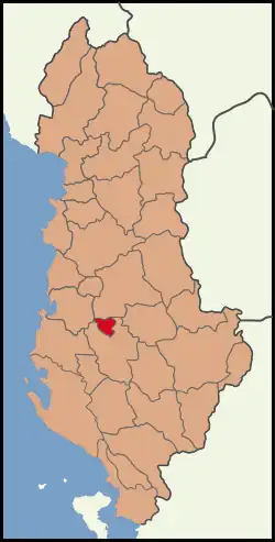 Kuçovë District (Albanian: Rrethi i Kuçovës) was one of the 36 districts of Albania, which were dissolved in July 2000 and replaced by 12 counties. It had a population of 35,571 in 2001, and an area of 112 km2 (43 sq mi), making it the smallest district of Albania.[1] It is in the centre of the country, and its capital was the former municipality of Kuçovë (which in 2015 became a sub-unit of the larger municipality of the same name). Its territory is now part of Berat County: the municipality of Kuçovë (partly).
