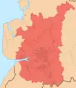 City of Preston, South Ribble, Chorley, eastern half of Wyre, eastern half of Fylde, north east part of West Lancashire, western fringes of Ribble Valley[5] |