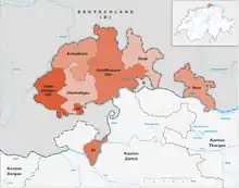 - Oberaargau with capital Wangen an der Aare, made up of all or part of the former districts of Aarwangen and Wangen