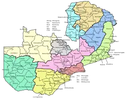 The ten provinces of Zambia are divided into a total of 116 districts as of 2018.