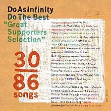 Do the Best "Great Supporters Selection" is a fan-selected collection chosen through an online poll held by avex trax on Do As Infinity's official site after its disbanding. It was released among five other different Do As Infinity items on the same day. Fans were allowed to pick ten songs and a choice to leave comments; many fans from overseas also took part in the process, but only three comments from overseas fans were selected to be printed into the book, one each from Canada, United States, and Taiwan. All the names of the voters were printed in the book however. This two-disc album comprised thirty songs out of the eighty-six total Do As Infinity songs (not including any remixes or new arrangement mixes); surprisingly, not all of the band's A-sides were included in the album. The cover of the album lists the titles of the 86 songs that Do As Infinity has written so far in no particular order. There are no pictures of Do As Infinity included in the album at all.