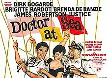 Doctor at Sea is a 1955 British comedy film, directed by Ralph Thomas, produced by Betty E. Box, and based on Richard Gordon's 1953 novel of the same name. This was the second of seven films in the Doctor series, following the hugely popular Doctor in the House from the previous year. Once again, Richard Gordon participated in the screenwriting, together with Nicholas Phipps and Jack Davies, and once again Dirk Bogarde played the lead character Dr Simon Sparrow. The cast also includes James Robertson Justice and Joan Sims from the first film, but this time playing different characters. This was Brigitte Bardot's first English-speaking film.
