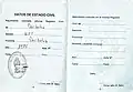 Before the introduction of the DNI in 1968, women had a Libreta cívica ("civic booklet"); men a Libreta de enrolamiento ("(military) enrollment booklet").[4][5] For many years, the DNI was issued as a small green booklet (called libreta). In 2009, the DNI was revamped and digitalized; and booklets (now blue) were issued along with an identity card simultaneously. Since 2012, DNIs are issued only in card format. The new DNI card is required to obtain the new biometric Argentine passport. Foreigners can get it at “RadEx” system but "extranjero" (foreigner) is printed on the back side. Argentines can get a libro de matrícula, which is only for citizens, in consulates.[6]