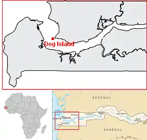 Dog Island is a small island, situated on the Gambia River in the Republic of the Gambia about 13 kilometres from the mouth of the river to the Atlantic Ocean. The area of the island is less than 3.5 hectares. During low tide the island is connected to the mainland, but during high tide it is separated by about 150 metres from the headland of Dog Island Point on the north bank of the river. The island is named after the sound made by the resident baboons, which from a distance sounds like dogs barking.