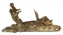 A doglock is a type of lock for firearms that preceded the 'true' flintlock in rifles, muskets, and pistols in the 17th century. Commonly used throughout Europe in the late seventeenth century,[2] it gained popular favor in the British and Dutch military. A doglock carbine was the principal weapon of the harquebusier, the most numerous type of cavalry in the armies of the Thirty Years' War and English Civil War era. Like the snaphance, it was largely supplanted by the flintlock.