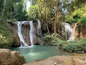 Doi Phu Nang, the mountain that gives its name to the park, with an altitude of 1,202 m, is the highest peak in the area. The sources of two tributaries of the Yom River are in this mountain.[3] The park also has scenic rock formations and two impressive waterfalls, Namtok Than Sawan and Namtok Huai Ton Phueng.[4]