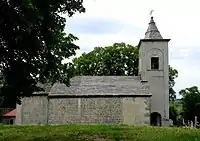 The local church is dedicated to Our Lady of Sorrows and belongs to the Parish of Senožeče.[3]