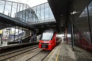 Dolgoprudnaya is a railway station of Line D1 of the Moscow Central Diameters in Dolgoprudny, Moscow Oblast. It was opened in 1914 and rebuilt in 2020.[1][2]