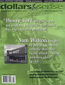 Dollars & Sense describes itself as publishing "economic news and analysis, reports on economic justice activism, primers on economic topics, and critiques of the mainstream media's coverage of the economy."[2]