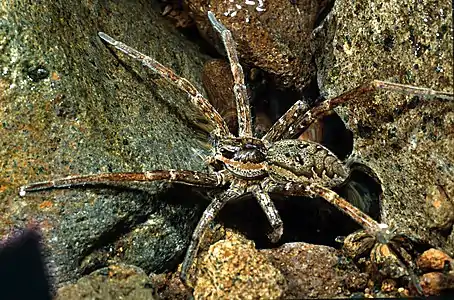 5. 1 2 Martin Nyffeler; Bradley J Pusey (2014). "Fish predation by semi-aquatic spiders: a global pattern". PLOS One. 9 (6): e99459. Bibcode:2014PLoSO...999459N. doi:10.1371/JOURNAL.PONE.0099459. ISSN 1932-6203. PMC 4062410. PMID 24940885. Wikidata Q21132013.