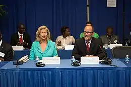 Dominique Ouattara is a member of the Organization of African First Ladies against HIV/AIDS (OAFLA) and attended various meetings, including the 7th African Conference on Sexual Health and Rights in Accra, Ghana in February 2016.[25] She is also a member of the African Synergy Association.
